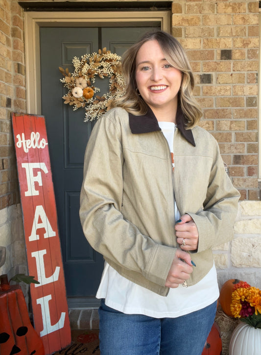 Khaki Corduroy Contrast Bomber Zip-up Jacket