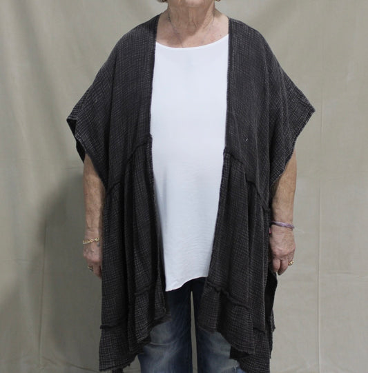 Black Embroidered Floral Scoop Neck Ruffle Hem Knit Top