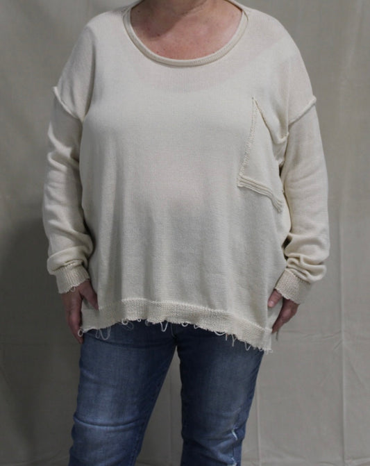 Natural and Black Striped Crochet Knit Front Tie Vest