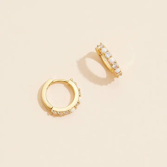 Gold 18kt Plated Opal and Rhinestone Huggie Earrings
