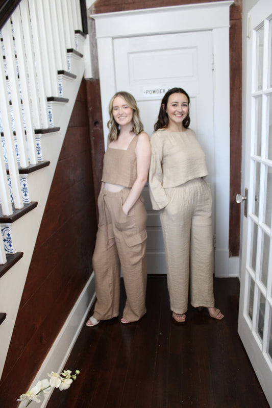 Natural Maya Relaxed Fit Utility Wide Leg Pants