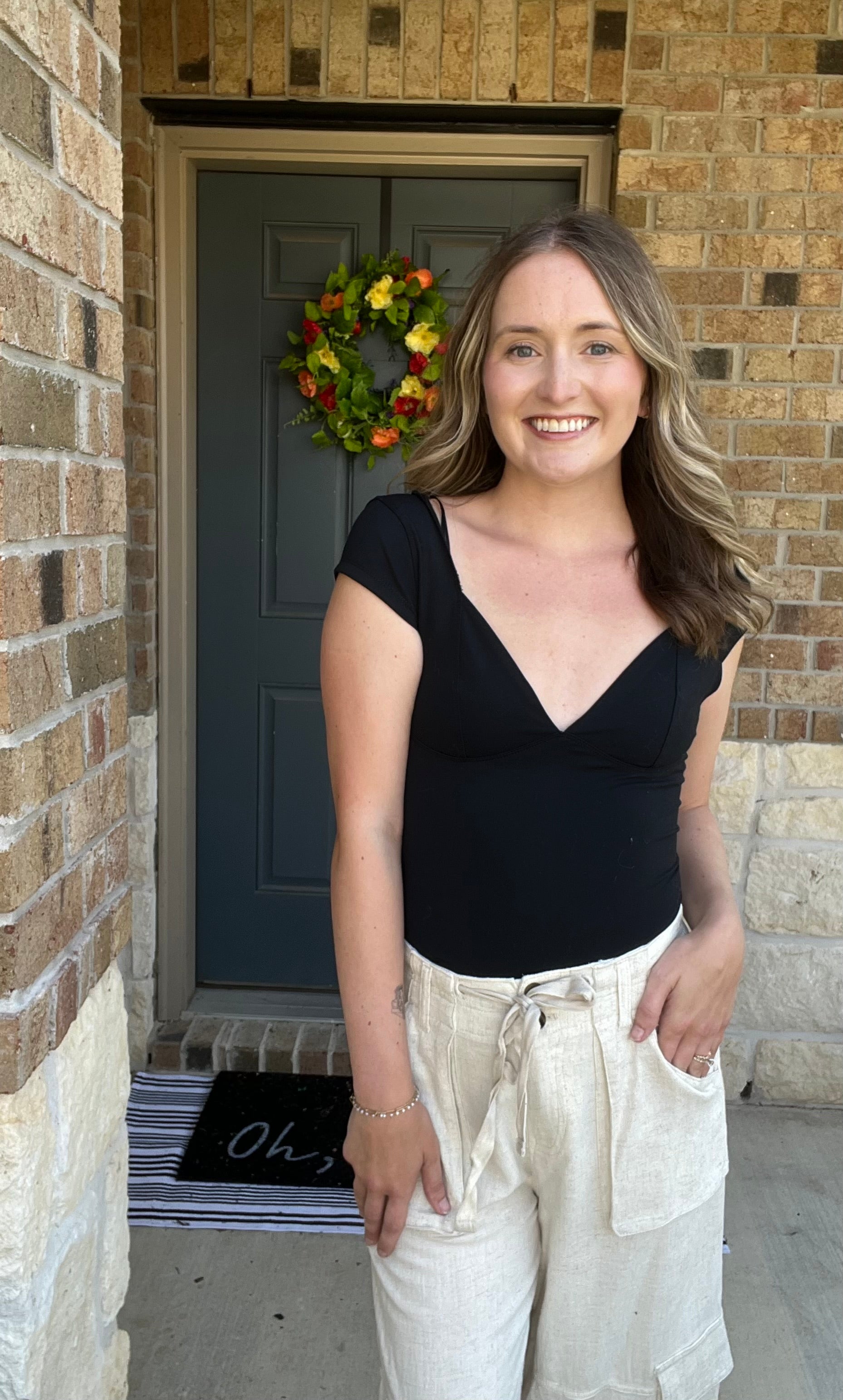 Elevate your essentials with our Black Alina Slim Fit V-Neck Top. This sleek and sophisticated piece features a flattering V-neckline that enhances your silhouette while the slim fit hugs your curves in all the right places. Crafted from a soft, breathable fabric, it offers all-day comfort and effortless style. Perfect for layering under a blazer for the office or pairing with jeans for a chic weekend look, the Alina Top is a versatile wardrobe staple you won’t want to miss.