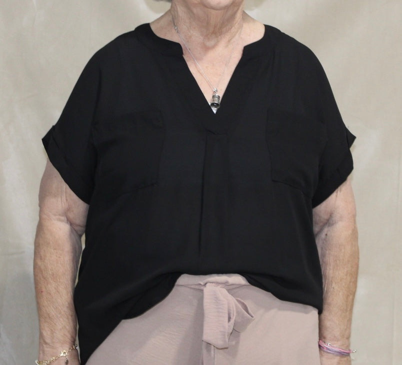 Black Button Back V-Neck Top