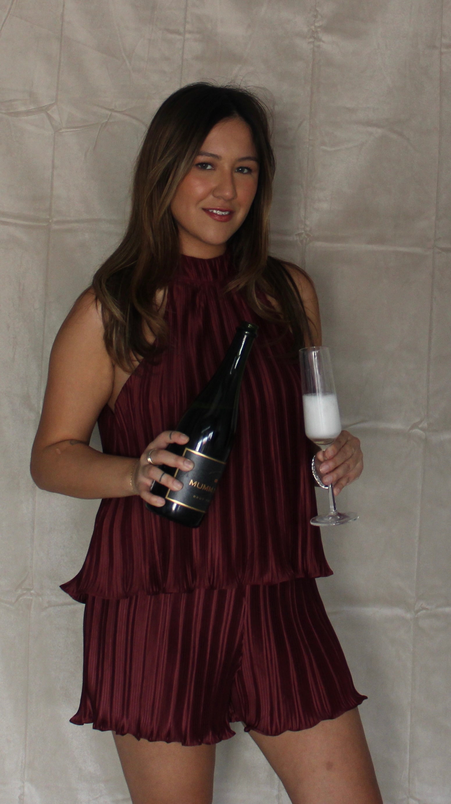 Burgundy Halter Two Piece Set