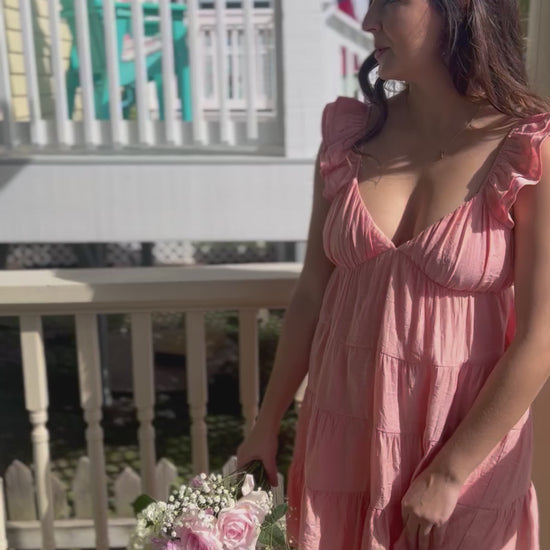 Introducing our charming Coral Ruffle Mini Dress, a must-have piece for your spring wardrobe. Crafted from lightweight fabric, this dress offers a breezy and feminine silhouette, perfect for sunny days. The vibrant coral hue adds a pop of color to your look, while the ruffle detailing adds a playful and romantic touch. With its mini length and adjustable straps, this dress is both flirty and versatile, ideal for day-to-night wear. Whether you're headed to a brunch with friends or a garden party, this dress is sure to turn heads. Pair it with sandals for a casual daytime look or dress it up with heels for a night out on the town. Embrace spring in style with this effortlessly chic mini dress.