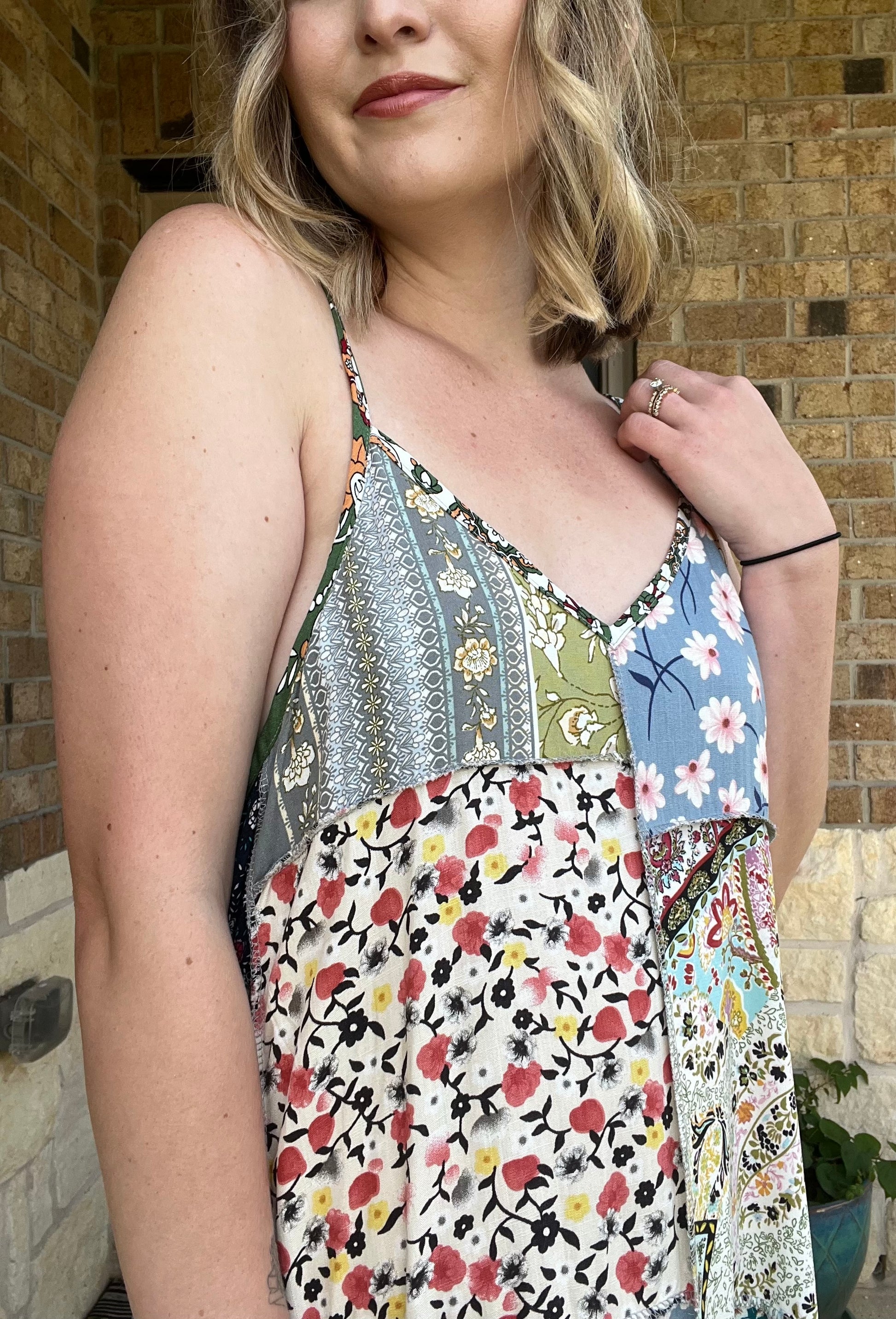 Soft florals, bold attitude. This patchwork midi dress is a whole vibe—flowy, flattering, and full of personality. With its mix of prints and effortless silhouette, it’s giving romantic with a rebel heart. Just add boots or strappy sandals and let the compliments roll.