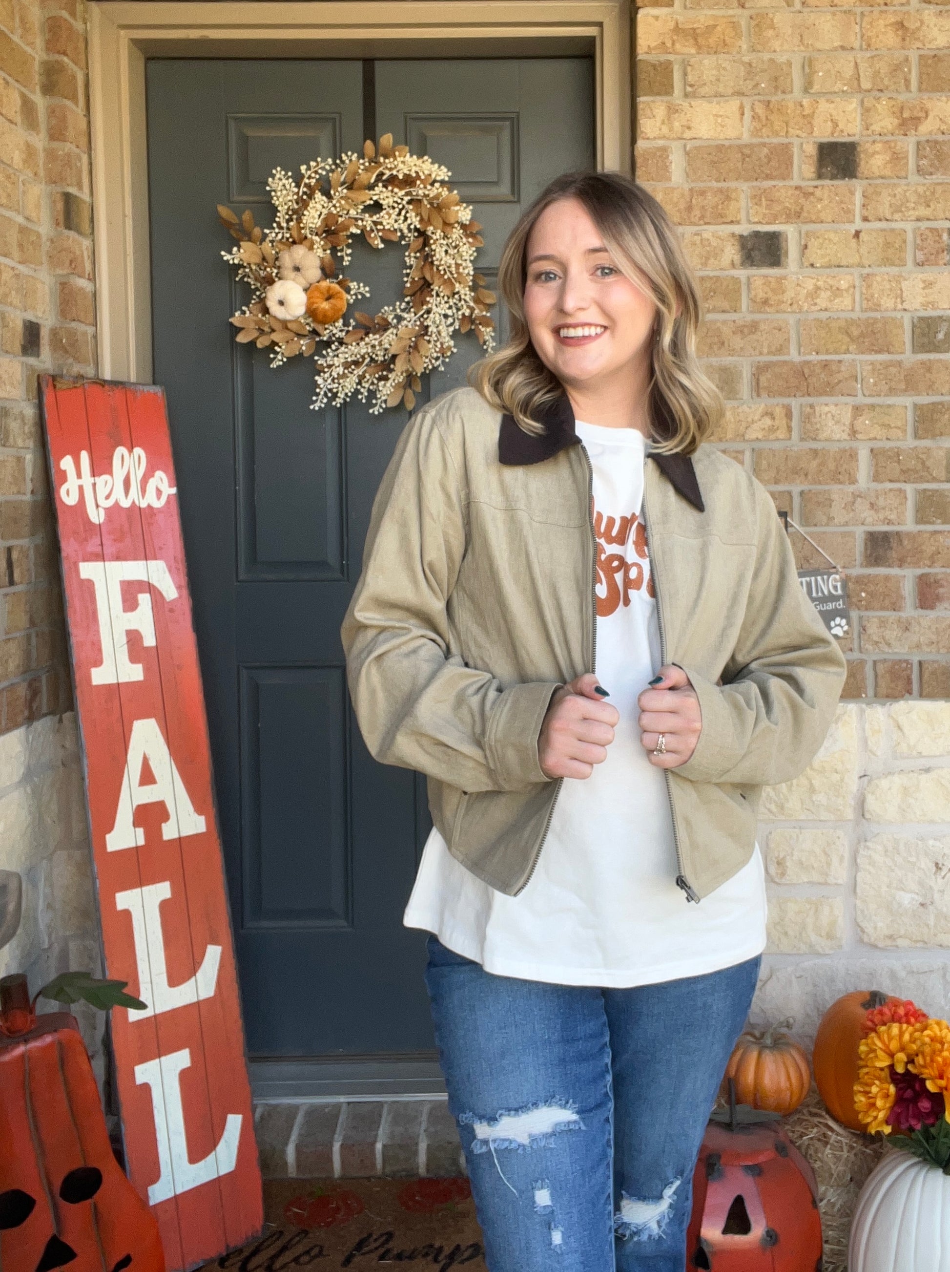 Khaki Corduroy Contrast Bomber Zip-up Jacket