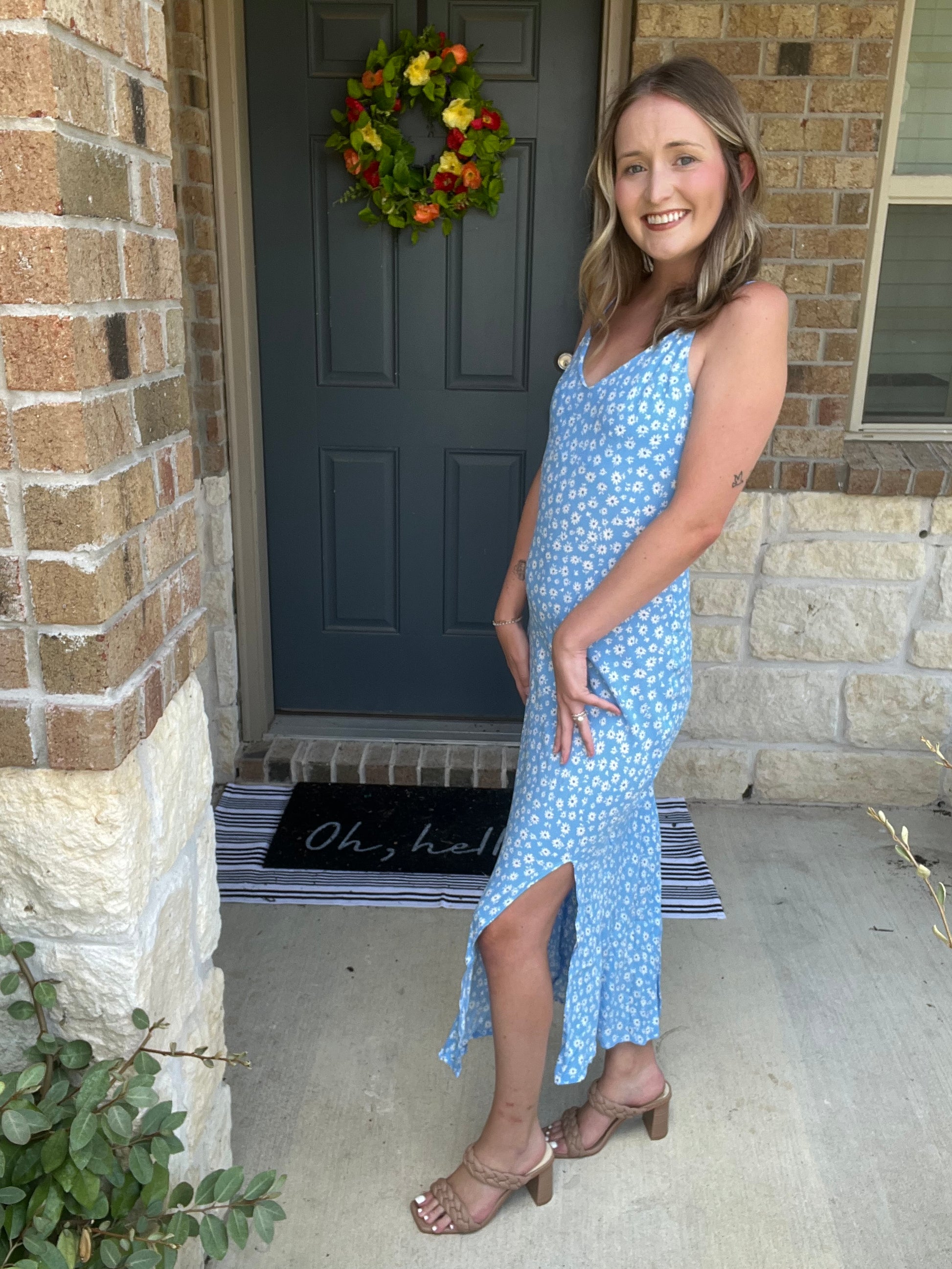 Light Blue Daisy Sleeveless Side Slit Midi Dress