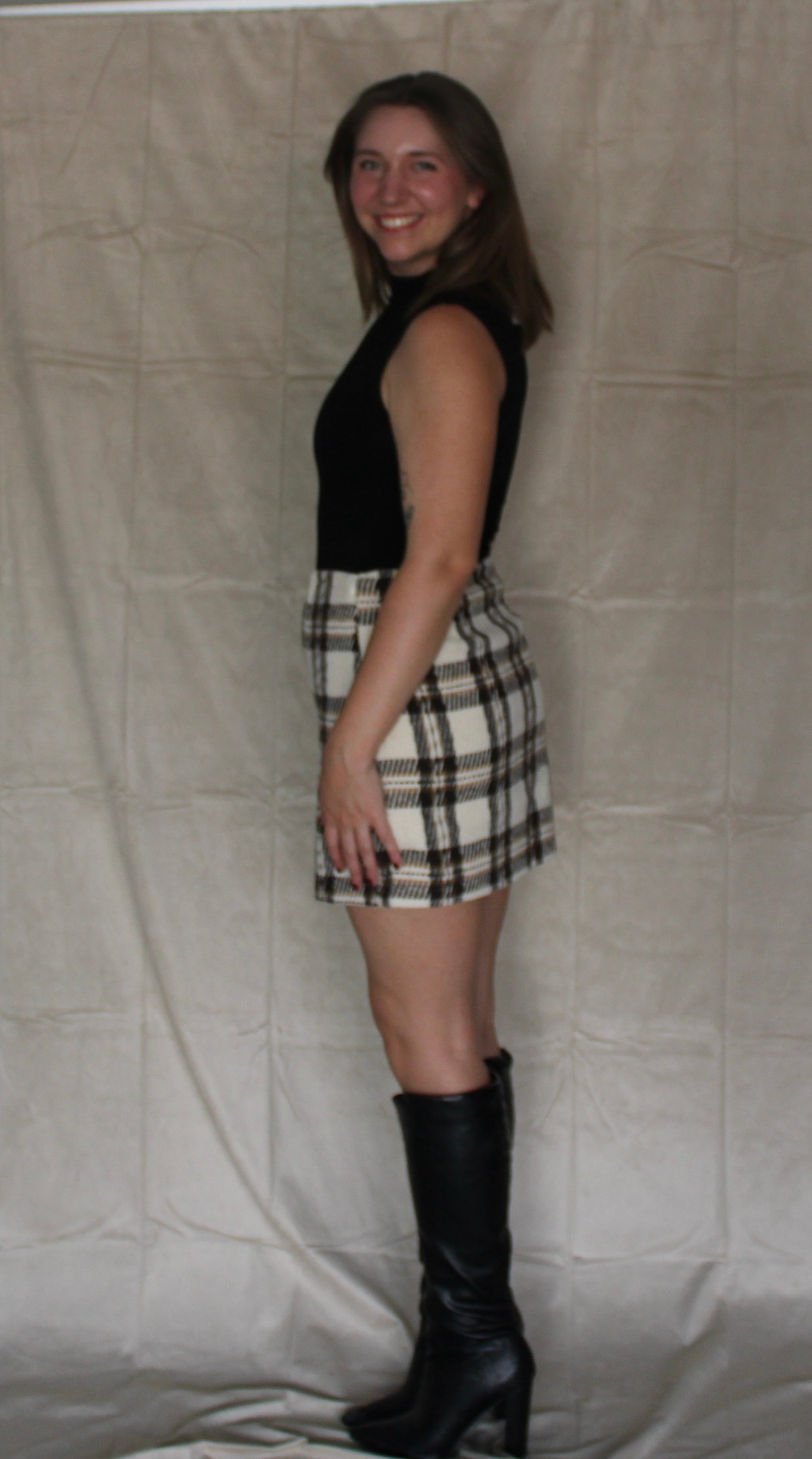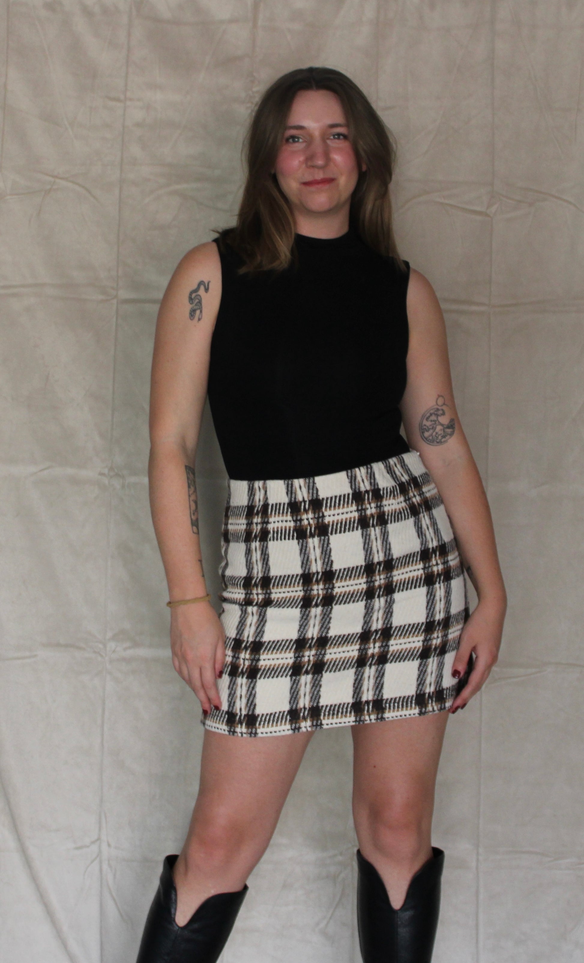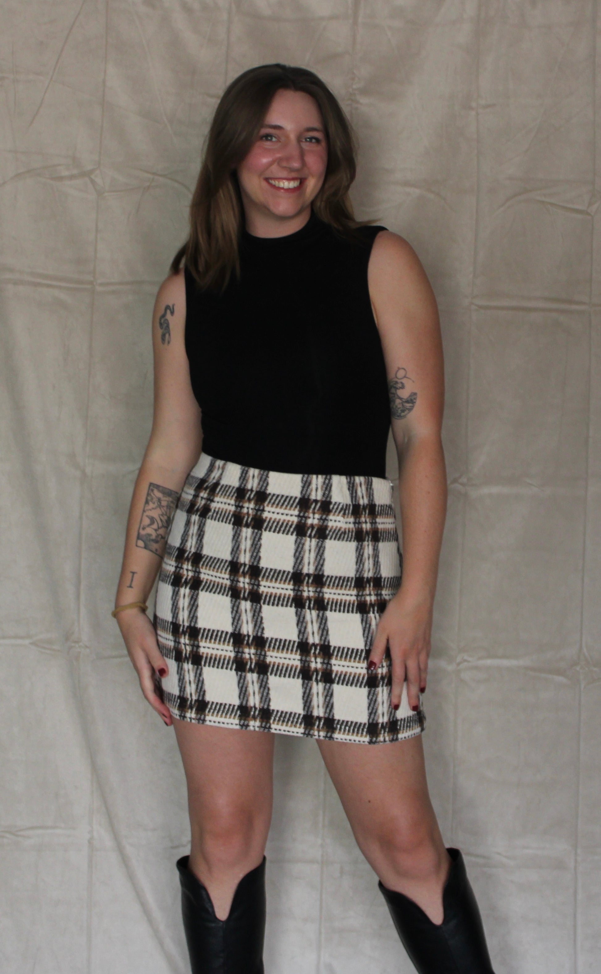 Step into style with our Plaid Textured Mini Skirt – a trendy addition to your wardrobe. This skirt boasts a chic plaid pattern that adds a touch of classic charm. The textured fabric elevates the overall look, creating a fashionable piece perfect for various occasions. The mini length brings a playful vibe, making it easy to pair with your favorite tops for a stylish ensemble. Crafted with attention to detail, this skirt is a versatile choice that effortlessly combines comfort and trendiness. Embrace a timeless yet contemporary aesthetic with our Plaid Textured Mini Skirt, your go-to for casual and chic outings alike. We recommend pairing it with our High Neck Black Body Suit.