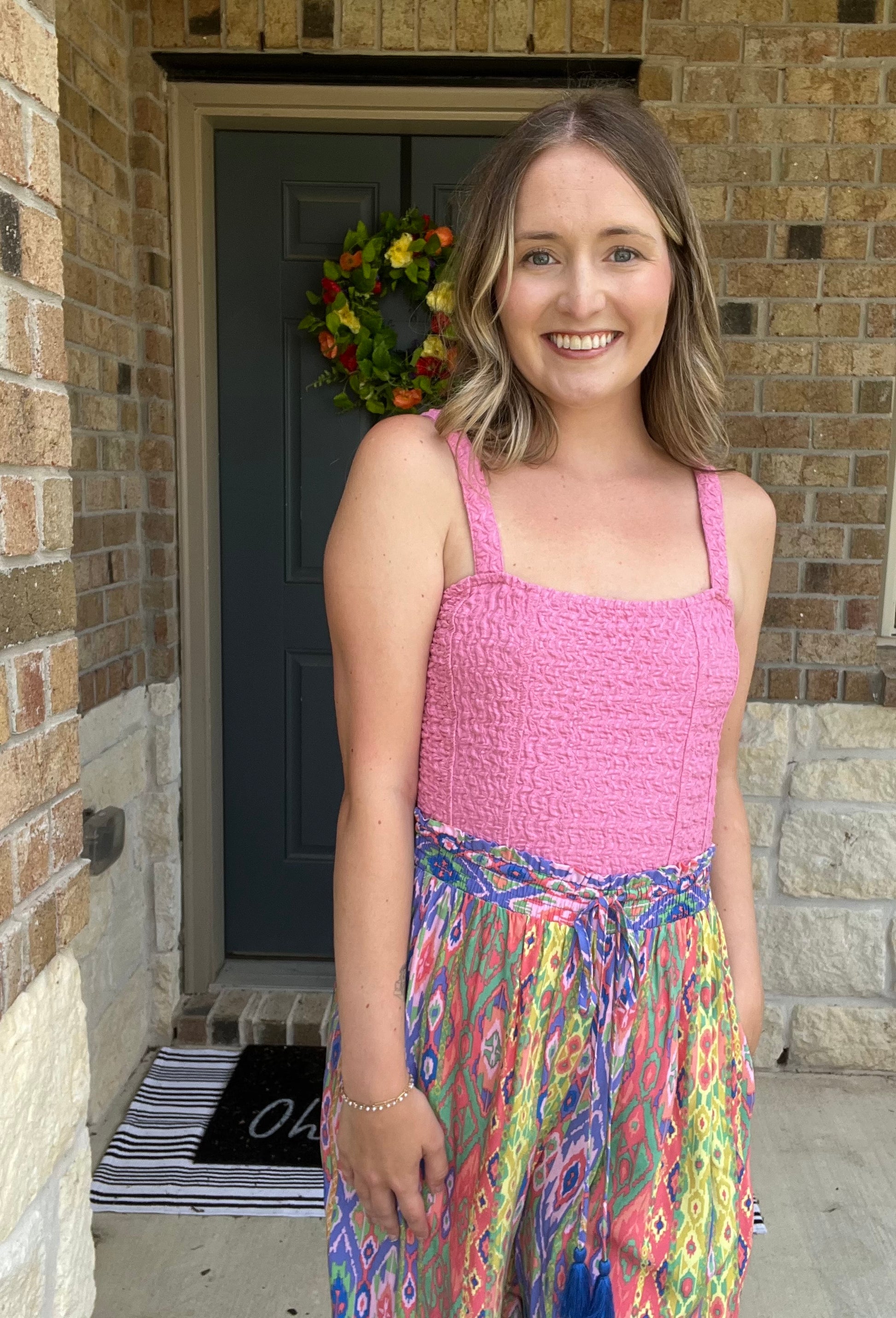 Turn heads in our Popcorn Hot Pink Bodysuit, a vibrant staple for your wardrobe. Crafted from a soft, textured fabric, this bodysuit offers a playful yet chic look that’s perfect for any occasion. The snug fit hugs your curves beautifully, while the square neckline and sleeveless silhouette add a touch of elegance. Versatile enough to pair with jeans, skirts, or shorts, this bodysuit is ideal for everything from casual outings to night out. Make a bold statement and showcase your unique style with this eye-catching piece.
