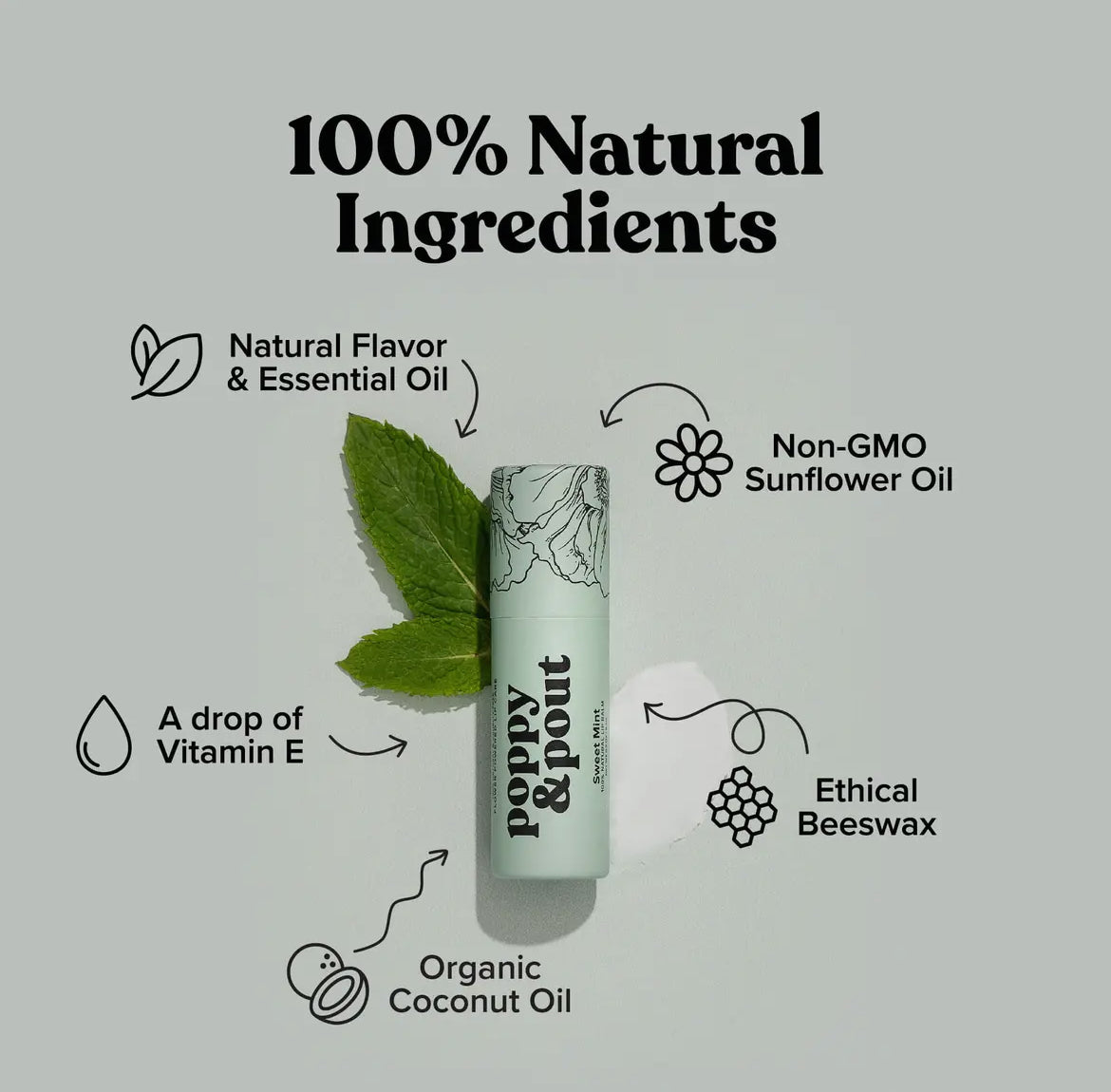 Our best-selling lip balms are some of our best sellers and are the perfect item to gift anytime of the year! Every Poppy & Pout lip balm is made with 100% natural ingredients and hand-poured into eco-friendly cardboard tubes!