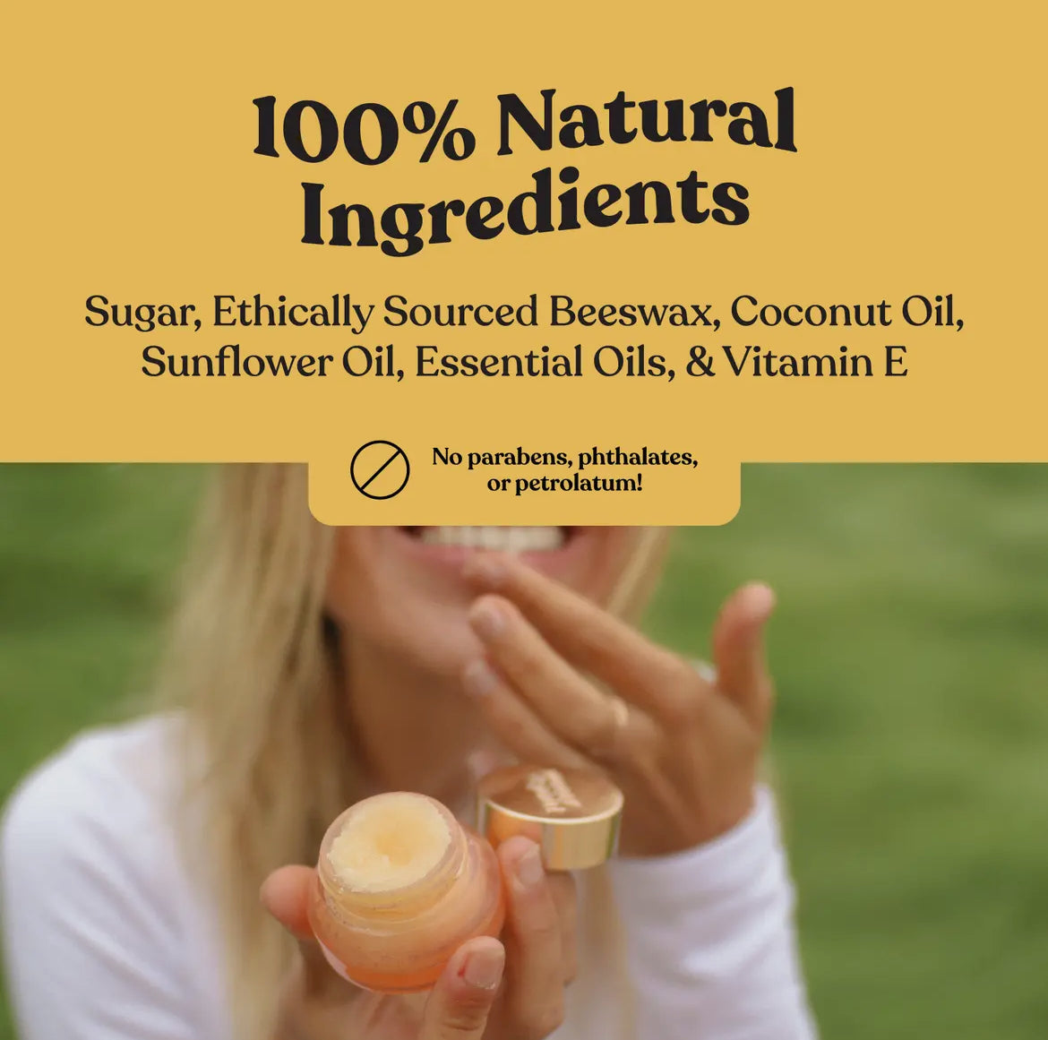 Our exfoliating lip scrub is the perfect way to prep your pout for smooth, hydrated lip balm application. We use a clean combination of natural ingredients to help clean and gently exfoliate your lips.
