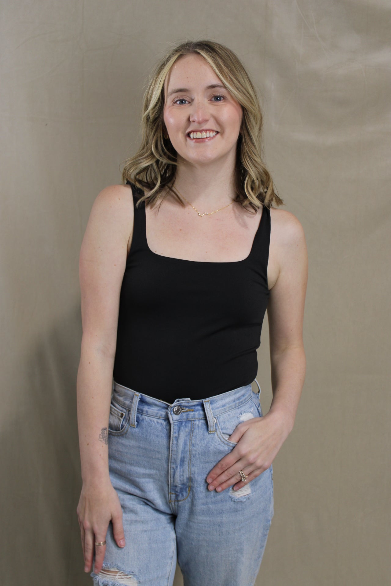 Unleash your confidence in our Spandex Square Neck Bodysuit in classic black. Crafted with a flattering square neckline and a touch of spandex for a perfect fit, this bodysuit seamlessly combines comfort and style. The sleek design makes it a versatile staple, easily paired with jeans, skirts, or tailored trousers. Elevate your wardrobe with this timeless essential that effortlessly transitions from day to night, ensuring you stand out with understated elegance.