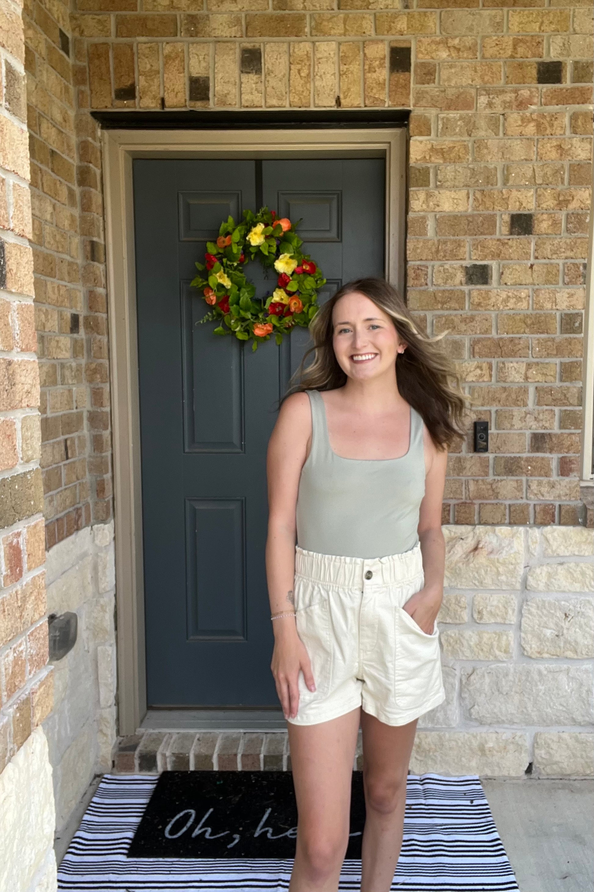 We recommend pairing it with our Ecru Canvas High Waisted Button Up Shorts to complete the look.