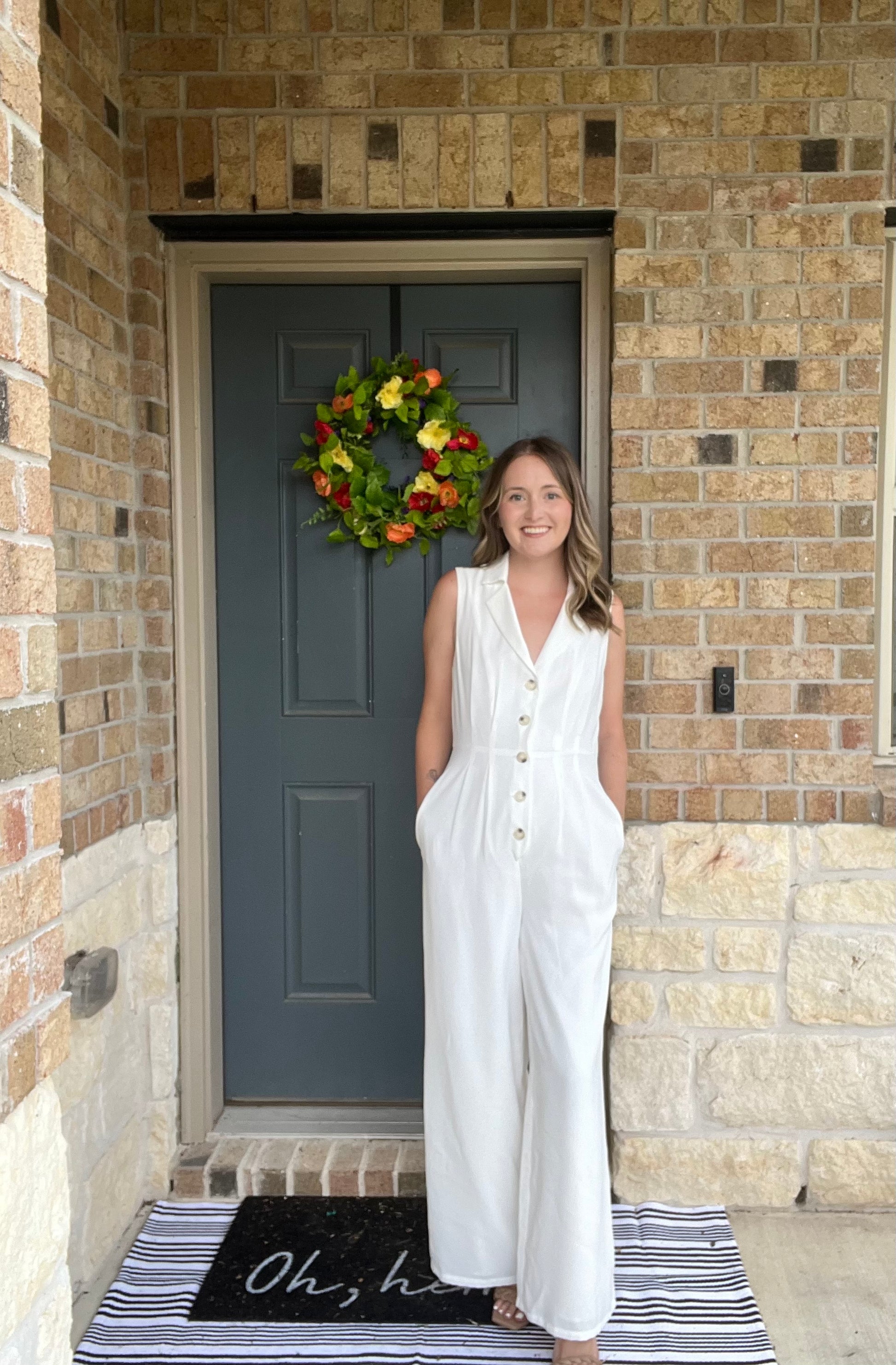 Embrace timeless elegance with our Classic White Button Front Jumpsuit. This versatile piece features a tailored silhouette that gives a chic vibe, while the button-front detail adds a sophisticated touch. Made from a breathable fabric, it offers comfort without compromising on style. The cinched waist accentuates your figure, making it perfect for both casual outings and special occasions. Dress it up with heels or keep it relaxed with sandals—this jumpsuit is a must-have staple for any wardrobe.