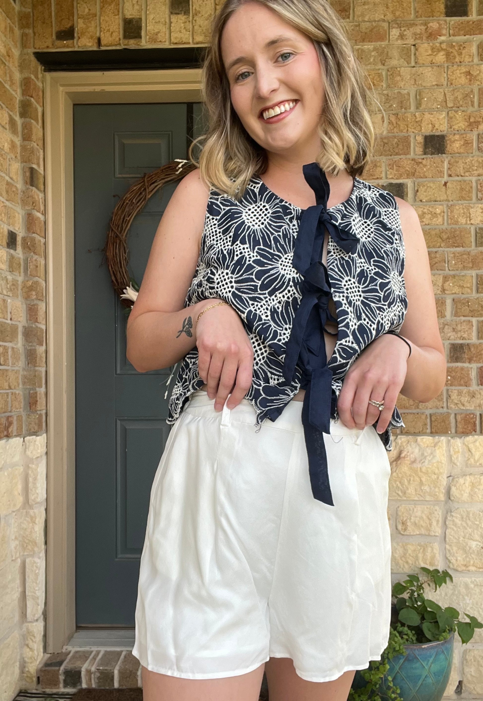 Clean, classic, and ready to run the show. These tailored white pleated shorts serve effortless polish with just the right amount of edge. Dress them up, dress them down—either way, it’s giving slay! We also have them in Navy!